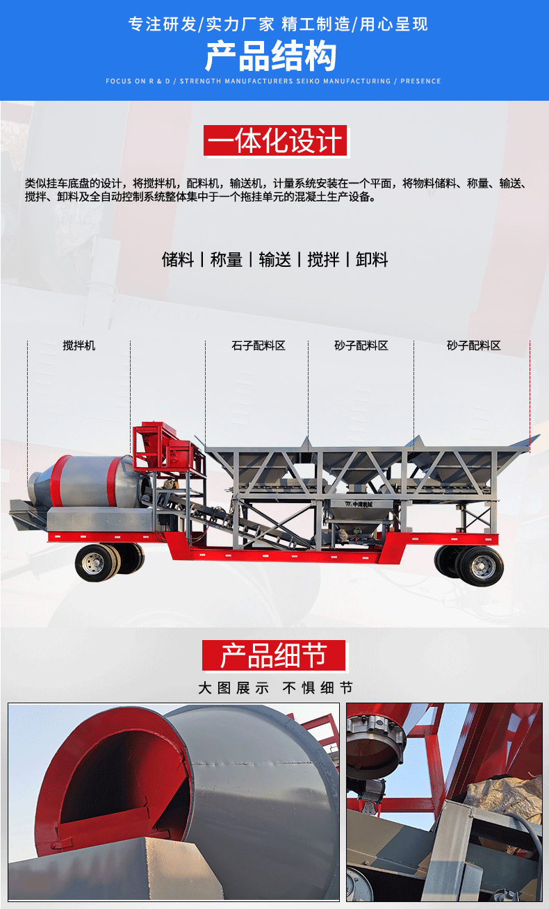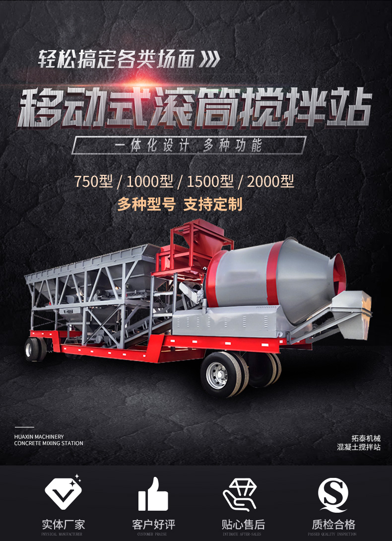 小型滾筒移動(dòng)混凝土攪拌站與固定式全自動(dòng)攪拌站的所有動(dòng)作過(guò)程、操作方式、維修保養(yǎng)完全相同,同時(shí)具備移動(dòng)靈活、拆裝迅捷簡(jiǎn)便、存放管理簡(jiǎn)單等獨(dú)有的特點(diǎn)。