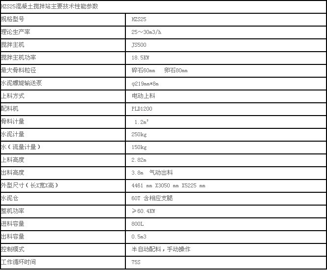 HZS25混凝土攪拌站主要參數(shù)如下: